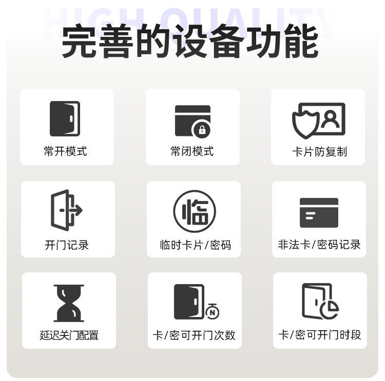 青海这款智能门锁提供室内门锁和防盗门锁两种选择,其中室内门锁尺寸为 2806521mm,适配 5050 锁体;防盗门锁尺寸为 3657021mm,适配 6068 锁体,可满足不同场景的安装需求。它采用铝合金一体成型搭配钢化玻璃面板打造,兼具坚固耐用的品质与简洁美观的视觉效果。门锁支持蓝牙无线通讯,解锁方式丰富多样,密码、卡片、蓝牙、钥匙四种方式随心选择,满足不同使用习惯与应急需求。其工作温度范围为 - 20~70℃,能适应多数地区的气候条件,采用碱性电池供电,安装更换便捷,是兼具安全性与实用性的门锁选择。